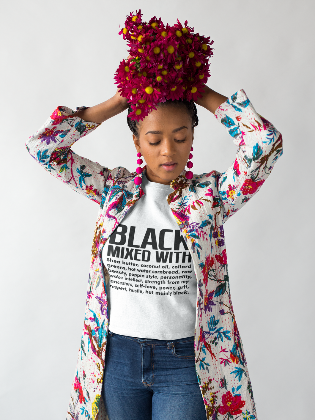 Celebrate strength and love with the BLACK MIXED WITH... tee, designed to honor and uplift Black women. Crafted from soft, comfortable fabric, this shirt offers a perfect blend of style and ease for everyday wear. Its thoughtful design reflects pride and affection, making it an ideal choice for those who want to express their identity with confidence and grace.