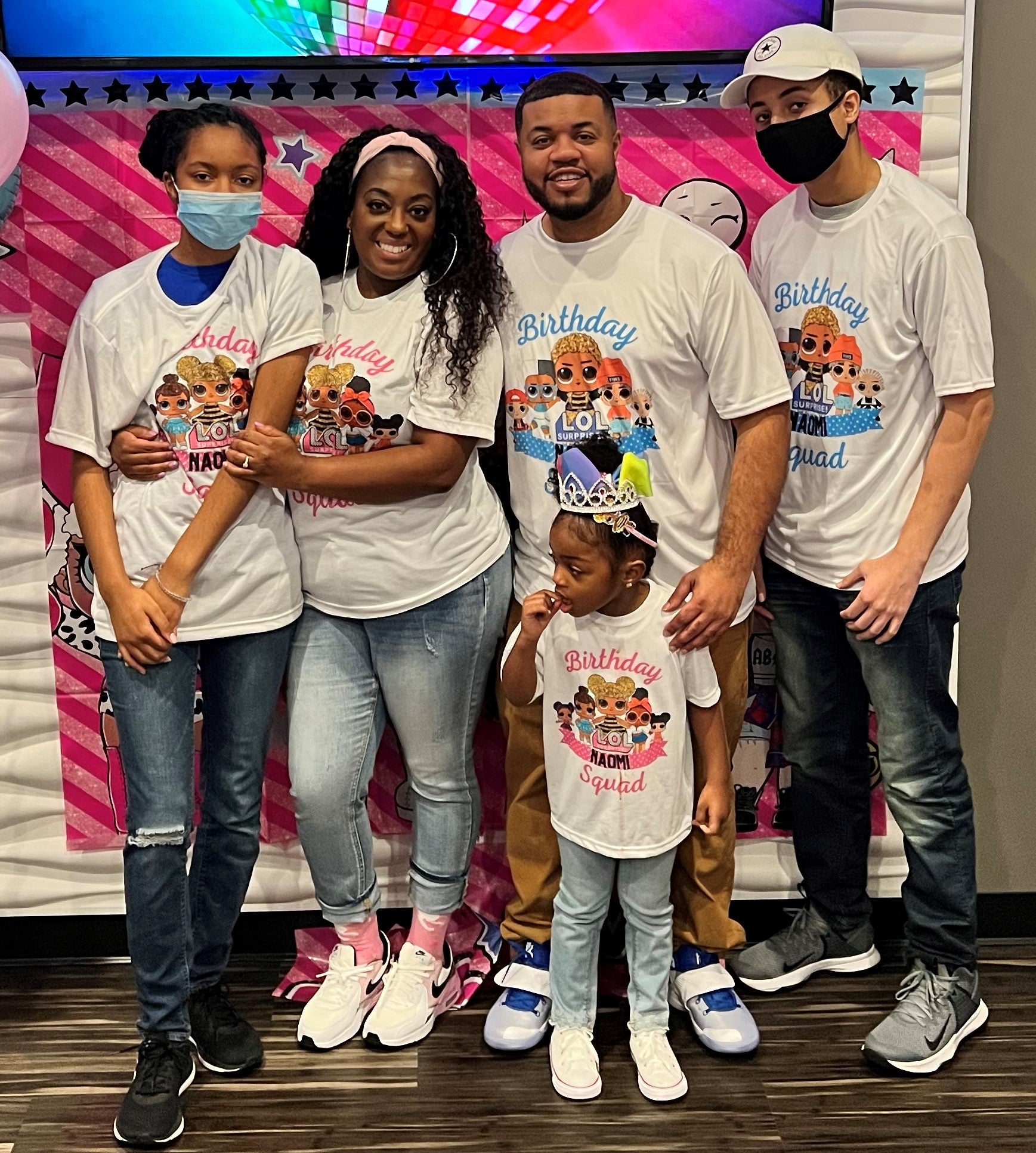 100% Polyester White Unisex Style TEES designed and customized to match your party theme! Orders are processed through email. Pricing can and will vary by design and size.